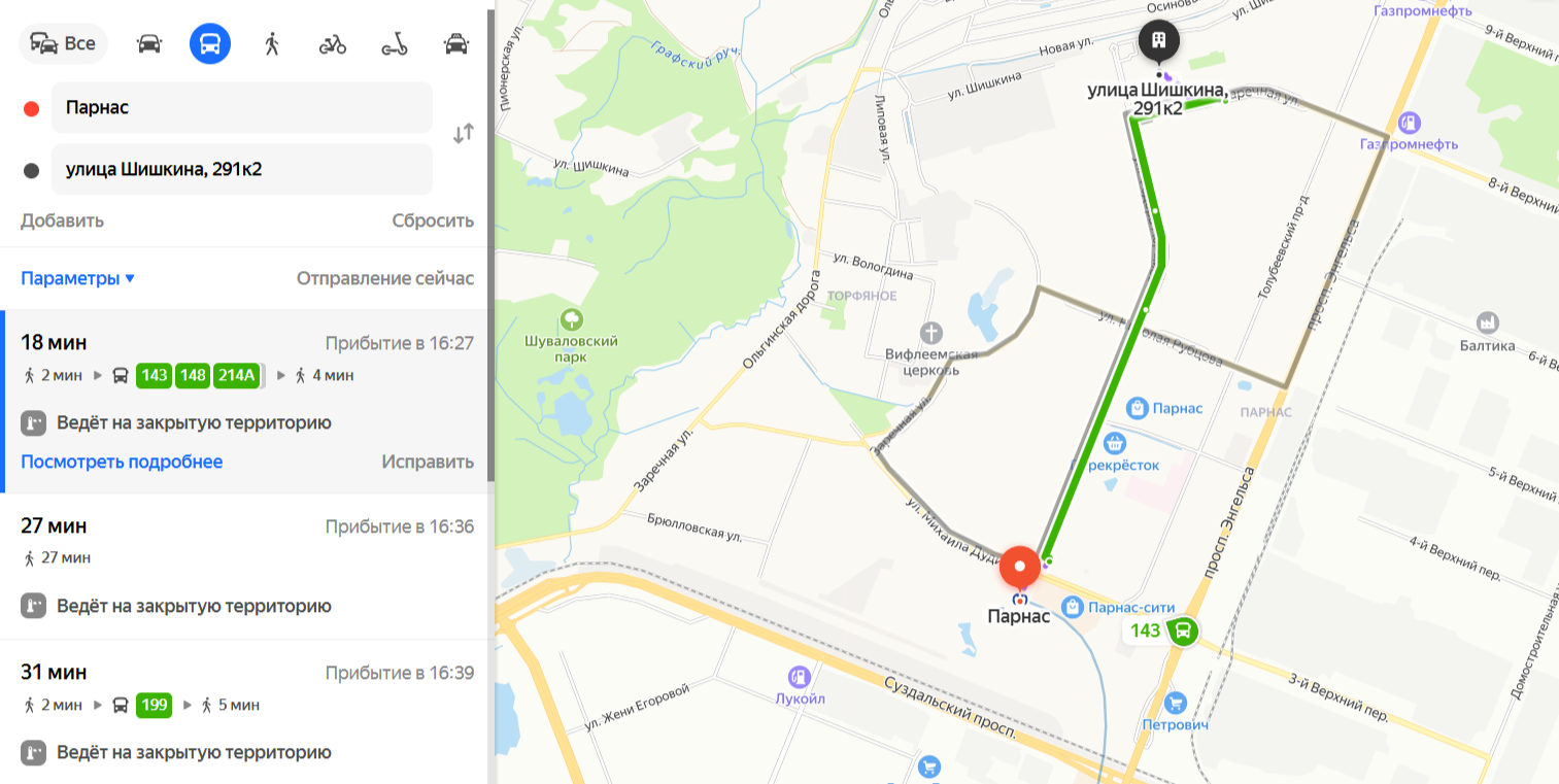7. Информация о маршруте движения к объекту на общественном транспорте: