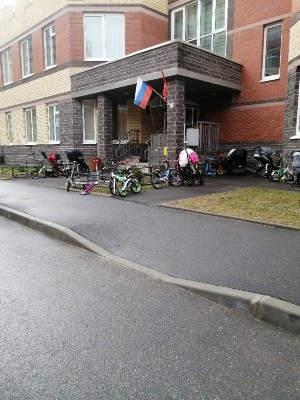 У дома 16 корпус 1 повернуть налево, следовать вдоль дома до забора детского сада.